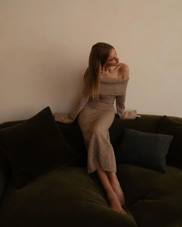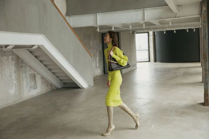 没错,紧身针织很能烘托出独特的女性气质,比较值得入手的版型当然是过膝长裙。上半身的领口可以有一些出其不意的小设计,在修饰肩颈的同时增添风韵。