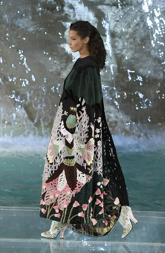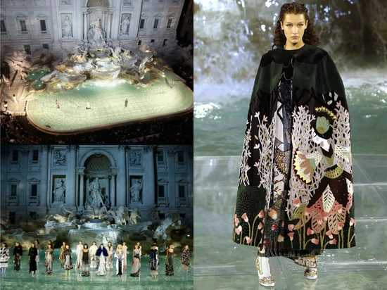 2016年恰逢Fendi品牌成立90周年,Fendi回到罗马,在著名的罗马许愿池特莱维喷泉上,举办了“传奇与童话”为主题的高定秀。