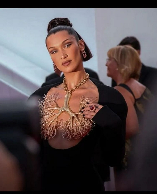 2016年,Bella穿着Alexandre Vauthier的红色开衩礼服出现在戛纳电影节,对于这次红毯,很多人形容这是她“一站成名”的地方,也是她“逆袭之路”的开始。