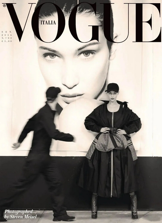 2016年Bella登上了意大利版《VOGUE》封面,当时她穿着全套的Prada,在黑白色调的大片里,展现着自己不断进步的表现力。