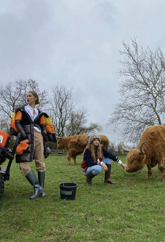 去年居家隔离期间,Bella和姐姐收到美版《VOGUE》主编Anna的信息,要她们自己在家做一个有关隔离的拍摄。姐妹俩那会正忙着在自家农场种薰衣草,没什么过多的Dress up,穿着马靴就这样拍了一组。