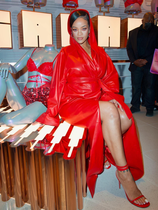 第二天,Savage x Fenty在洛杉矶的第一家实体店开业,作为女老板的Rihanna自然要穿得红红火火。