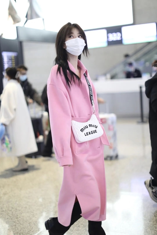 仙姑复工后的第一身机场Look,带着冰雪的气息。鼓鼓的短款羽绒服配喇叭裤超显腿长,这外套颜色好嫩,把本是冷白皮的仙姑衬得白出了新高度。