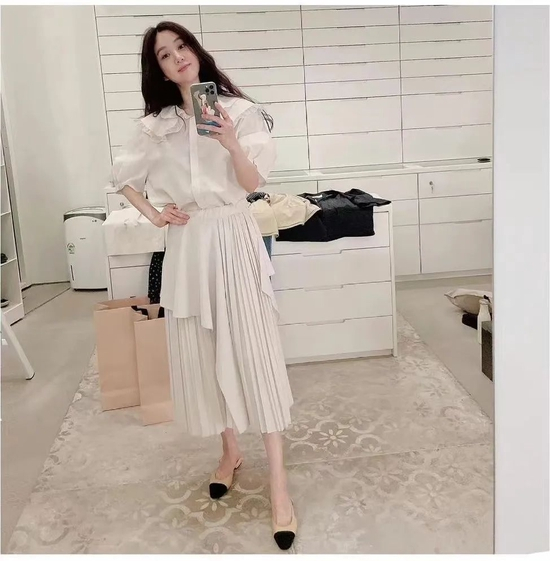 除了正式场合干练率性的“西装媛”,另一面的欧尼其实也是很温婉柔美的,这样的气质型美人,怎么能离得开裙装的加持呢?