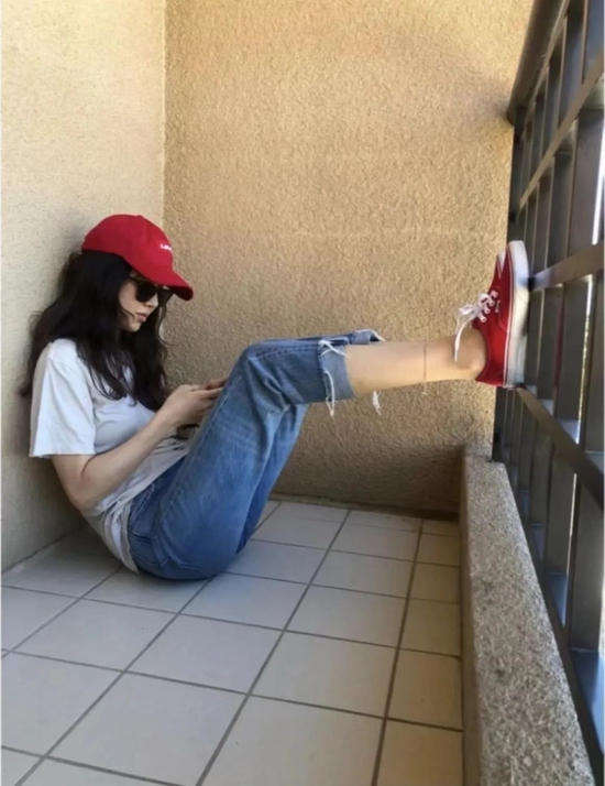 看她照片会觉得是个有距离感的美女,其实私下的她很随意爽朗,大大咧咧,也时常极具少年感👆 ,露出脚踝的牛仔九分裤和舒适的球鞋也是欧尼照片里时常出现的百搭单品哦。