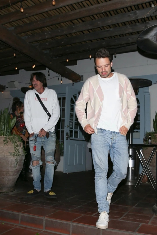 好神奇的铜矿!在《帕姆与汤米》中出演汤米·李的包包和汤米·李他本人现身马里布共进晚餐,包包身穿粉白菱格开衫搭牛仔裤小白鞋,快四十的人看起来还是这么青春的~