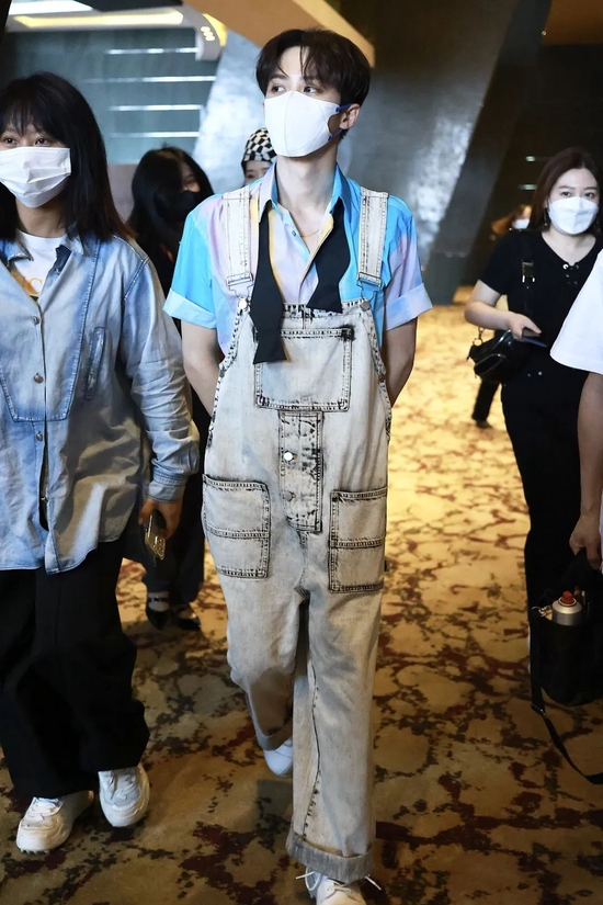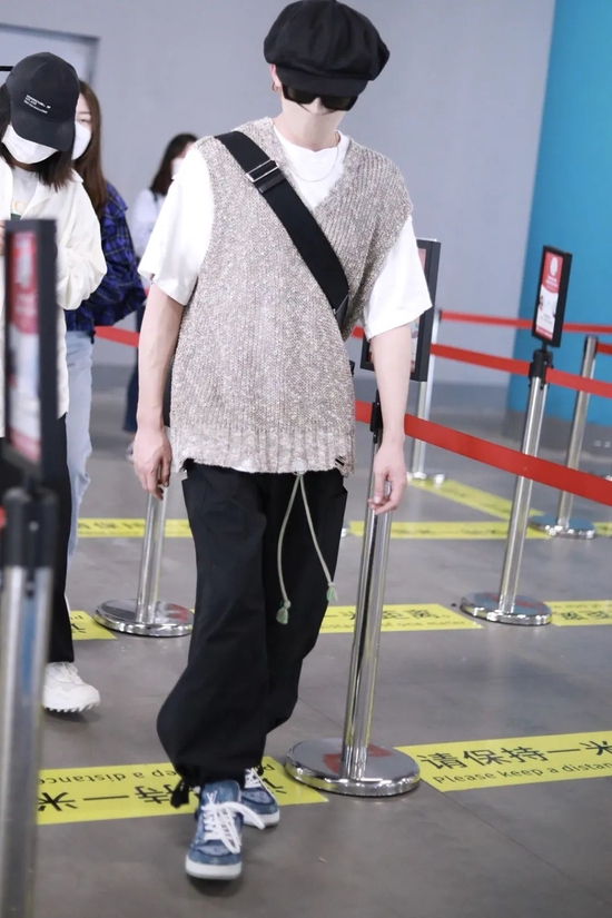 结束完录制的檀健次由机场返程的穿搭又是另一种感觉,潮流与复古融合得刚刚好。