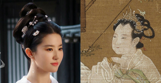 剧里披发造型相对比较少,大多数情况是挽成各种发髻,这在宋代的古画里很常见。