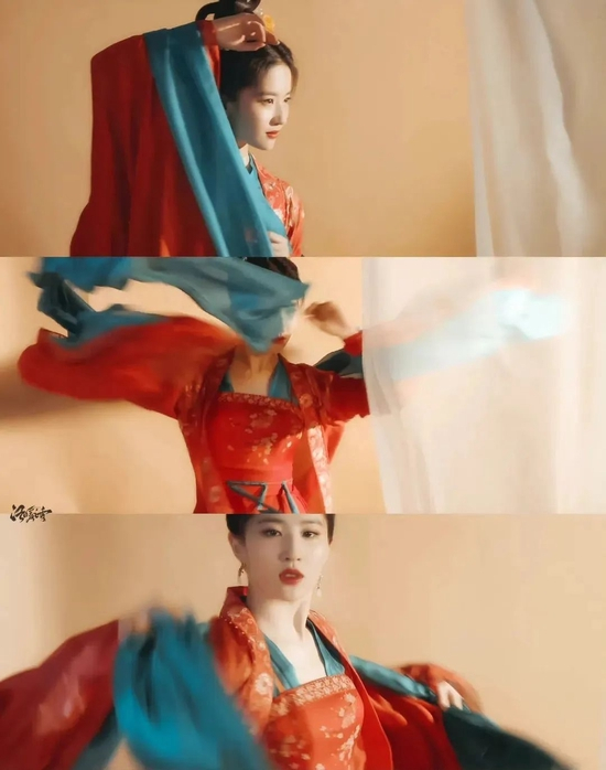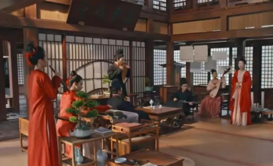 而且《歌乐图》里红色长褙子的造型也被呈现了出来,长镜头的运用更是精彩。