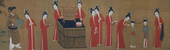 《韩熙载夜宴图》描绘了官员韩熙载家设夜宴载歌行乐的场面,绘写的就是一次完整的韩府夜宴过程,即琵琶演奏、观舞、宴间休息、清吹、欢送宾客五段场景。