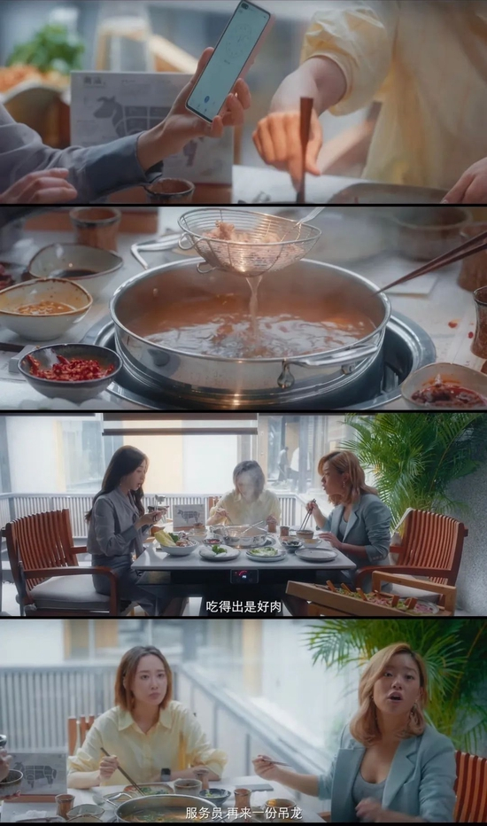 刘净精准把控涮肉时间,方欣迟迟不下筷子,吃得慢条斯理,夏梦则一口气追加两份吊龙,把买房压力转化成食欲。