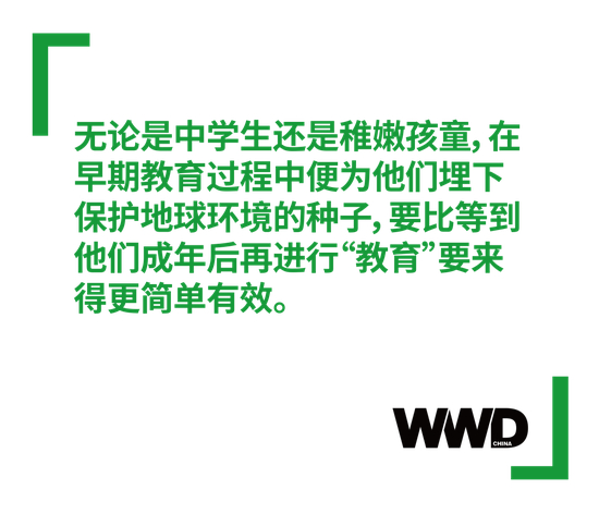 当大部分品牌还在致力于培养消费者环保消费意识的时候,Prada 集团早已把眼光对准了十年后的未来。无论是中学生还是稚嫩孩童,在早期教育过程中便为他们埋下保护地球环境的种子,要比等到他们成年后再进行“教育”要来得更简单有效。