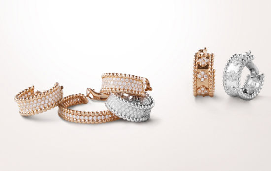 Perlée 环式耳环(小号),玫瑰金和白金,钻石;Perlée环式耳环(大号),玫瑰金,钻石