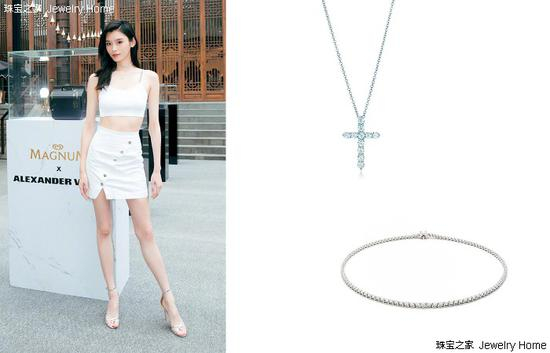 蒂芙尼钻石项链和十字架吊坠这两件珠宝倒是出镜率超高,日常街拍、品牌活动甚至走红毯,都百搭不过时。不过想要稳重求胜,法宝就在于叠搭。奚梦瑶最普通的两件单品也能打造出不一样的时尚效果。