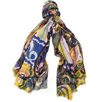 印花丝绸围巾细羊毛和丝绸混纺的材质非常舒适,漂亮的印花富有艺术气息,鲜艳的颜色很吸引眼球,充分体现了该品牌的不拘一格。