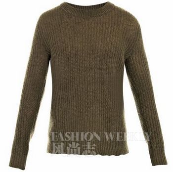 墨绿色的圆领长袖毛衣,腰身的针织下摆突显了品牌一贯的无忧无虑休闲风格,面料选用马海毛材质,大大提升衣服的保暖性能,是冬日衣橱里不错的百搭单品。