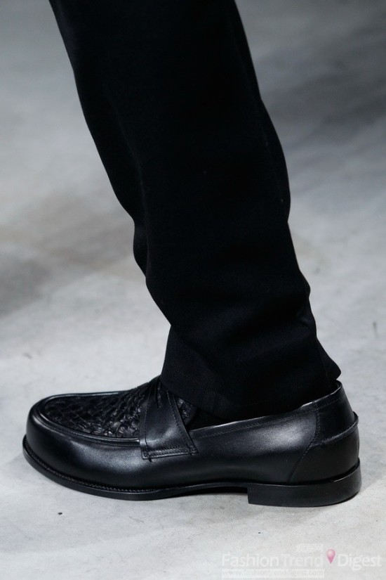 “亦正亦闲”的懒汉鞋在米兰秀场上大行其道,即将成为1314秋冬男士鞋履的”Must Have”。当然在传统的款式之外,是各个品牌赋予其的个性化设计。比如PRADA夸张的防滑鞋底以及光脚的穿法使之看起来更趋时髦;而Bottega Veneta则在鞋面上赋予其标志性的编织风格;Versace的高光彩色皮质以及船型鞋底则使懒汉鞋更具一股“妖”气。