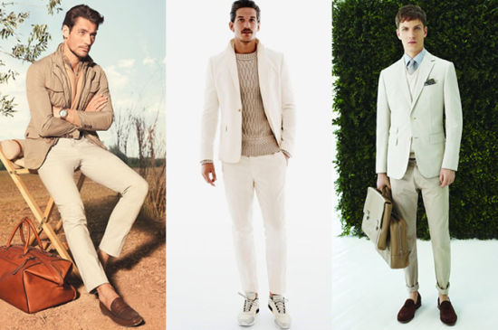奶油色系可以穿得很休闲,也可以是轻商务风范,只是在色调上要把握好,避免颜色过于奶油变娘炮的危险。可以在奶油色系中加上一些咖色系中和一下大面积的浅色调。