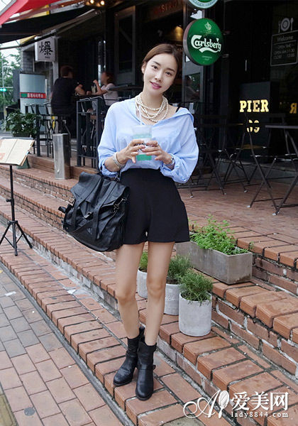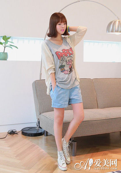 天蓝色的短裤搭配简约的灰色t恤有种懒洋洋的感觉,周末出门逛街最适合不过了,最适合懒懒的姑娘们哦!