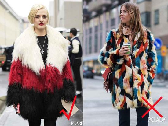 更赞的是,人造皮草能够轻易染出不同的色彩和效果,让皮草的花色款式一下子多了好几倍,又可以再次霸占冬季街拍了。但皮草一直给人莫名的土豪感,到底要选什么款式、怎么穿才能不像暴发户?