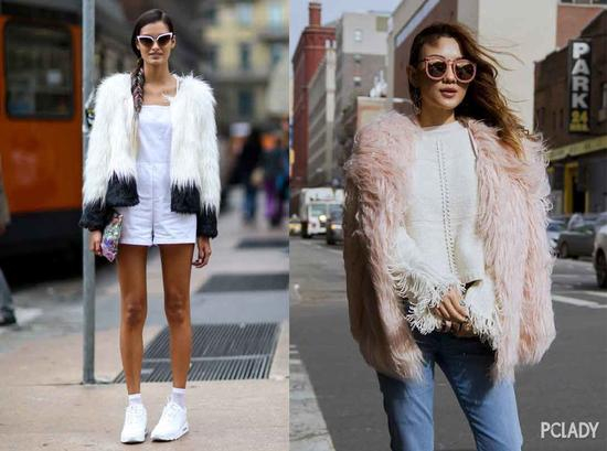 随着人造皮草的盛行,在大家拒绝真皮草的同时,清新、明亮色系的人造皮草大衣开始流行起来。