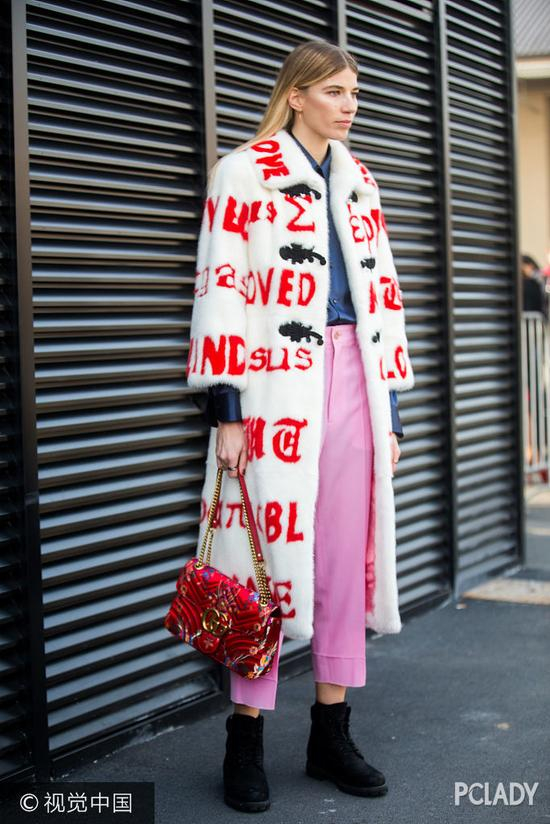 不想在颜色上作妖的话,不妨选择在带有小纹路单色皮草,在增添造型感之余,避免太Over的尴尬。