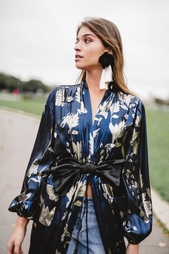 用睡袍搭配牛仔裤真的是很不错的选择,比起一本正经的西装和不拘小节的牛仔外套、运动夹克,睡袍外搭真的可以说是夏日必备单品了。