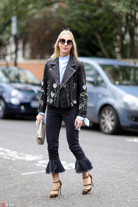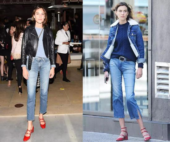 对玛丽珍鞋爱的最深沉的非钟小姐莫属,从夏穿到冬的这件单品可谓是非常实用了。她本身自带的英伦范儿配上复古的玛丽珍鞋,百看不厌。这双搭配牛仔裤的红色多绑带玛丽珍鞋,驾驭中性的皮衣和牛仔衣也毫不费力。