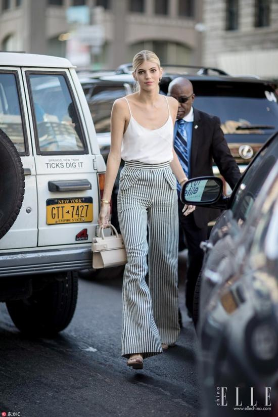 说到颜色,别忘了充分打开你的色彩想象!V领、U领吊带的筋骨感可以冲淡许多少女色系的甜腻,比如街头潮人拿浅紫搭配淡粉,纯白搭配绿条纹,视觉效果温柔而练达,不紧不慢。
