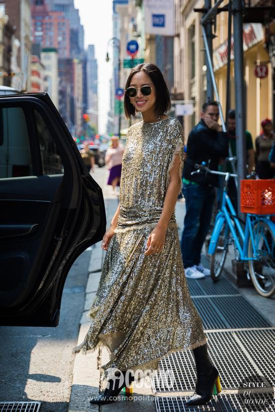 除了半身裙,也有时髦精选择亮片连衣裙,但是这样的裙子并不适合日常穿,除去隆重的场合或是蹦迪,COCO也找不到还有什么场面可以穿这些裙子了
