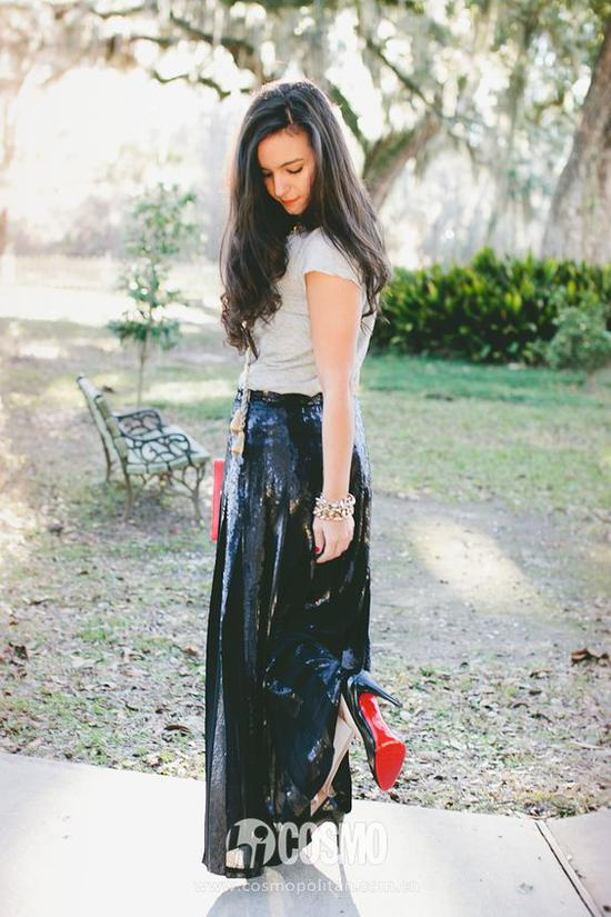 最常出现亮片元素的单品莫过于是各种裙子裤子,大大小小的闪片按照设计图本或多或少的缝在单品上,而亮片裙子则是最多人PICK的一个单品类目。其实很多人都会选择在搭配闪闪的裙子的时候选用简单的上装,像是一般的T恤或是衬衫。