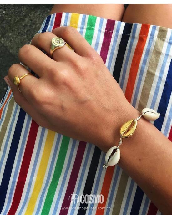 除了项链,像是一些设计十分简约的手镯和耳环也很受时髦精的宠爱。