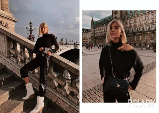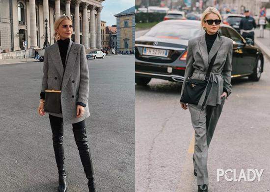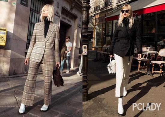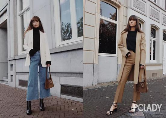 不相信的话看下图Giedre Dukauskaite身上的这两套LOOK,外套、裤子几乎都是同款,唯独里面的针织衫颜色不一样,相比之下,左边的整套LOOK会比右边的更加耐看些。