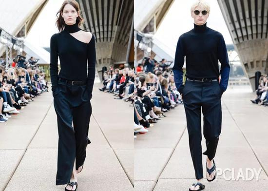 黑色针织衫再加上带有亮点的设计,单穿也很好看。像DION LEE 2018 秀场上,带有细节设计的黑色针织衫搭配整洁的西裤帅性出场。