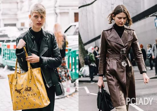 对于最近Pick上光泽感皮衣的我,看哪件都好看,尤其是看见搭配黑色高领衫+长靴的,帅气的架势气场尤为强大。
