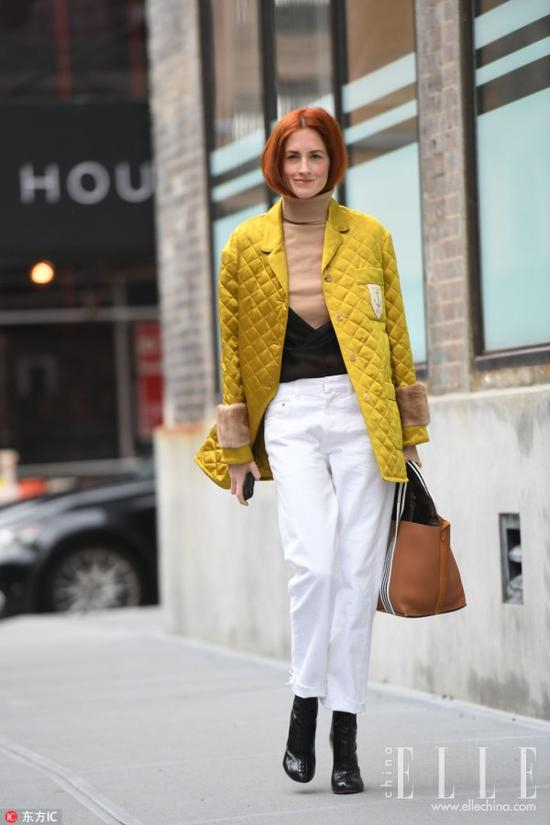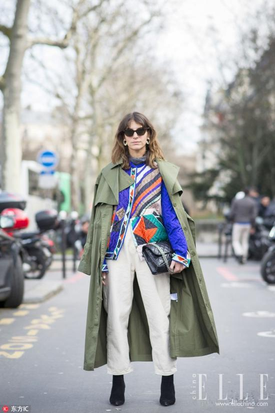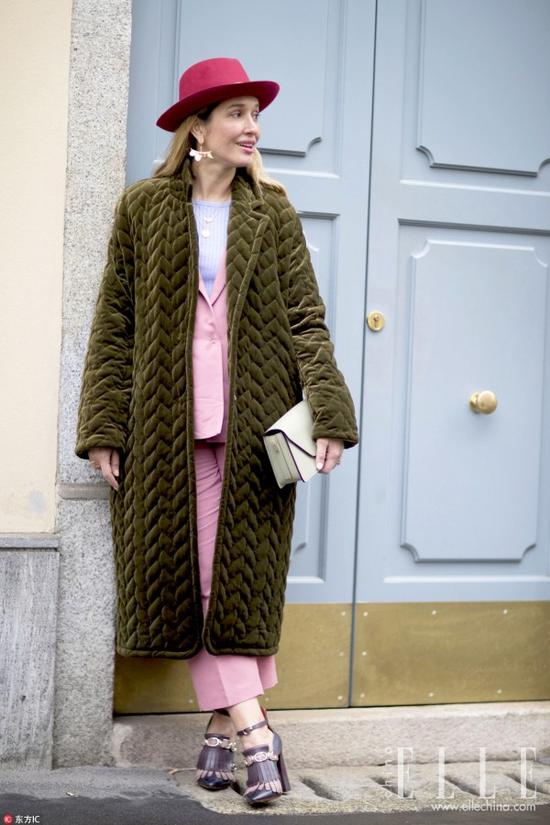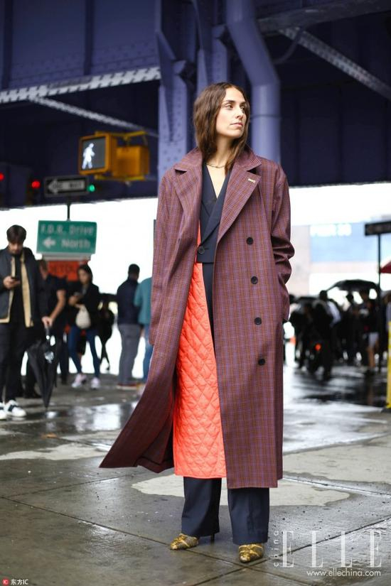看了上面的搭配,如果还是没有信心将绗缝穿好的话,用它来做点缀叠穿或者裙装也很不错。秋冬必备的一件长风衣里叠穿一件亮色的绗缝棉服,今年流行的“叠穿大法”给整体搭配增添了很多层次感。在颜色的选择上,里外顺色似乎有些过于保守,不妨尝试鲜亮一点的高饱和度绗缝内搭,让整体造型活泼起来。