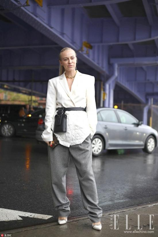 要问今年西装最夯的穿法,那必须是往腰上系一根腰带了,强调腰线的同时弱化了西装的正式感,即使是绗缝的面料也不会显得臃肿。