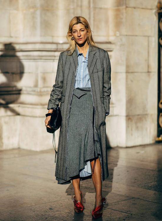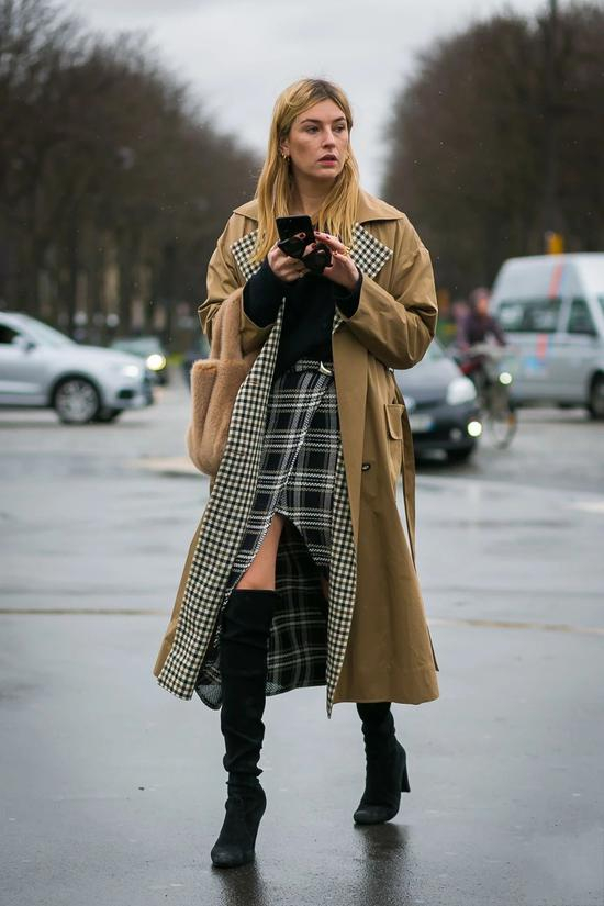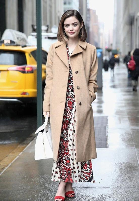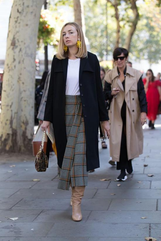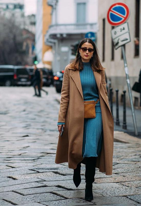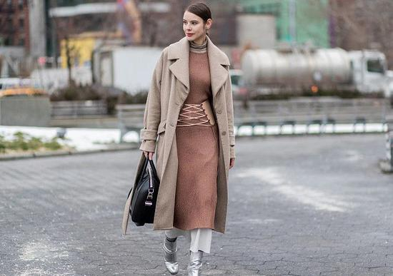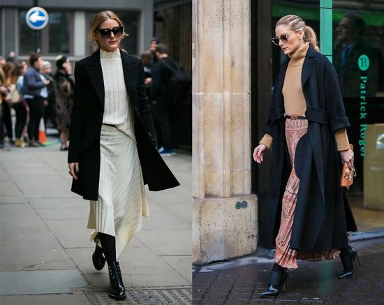那么怎么穿大衣+裙子效果最好呢?记住衣长和裙长的最佳关系是正负20cm,这样会更显层次感。