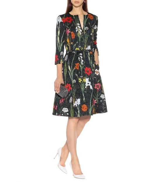 Oscar de la Renta花卉提花棉质混纺连衣裙