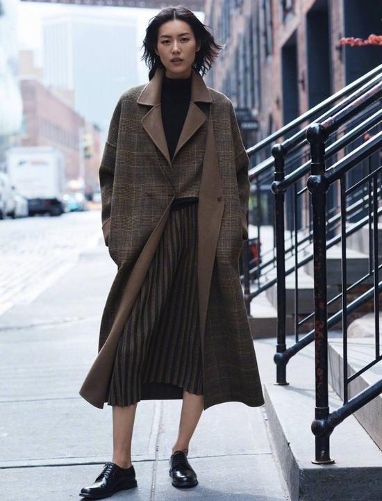投入一点轻薄的面料也很时髦,刘雯就示范了大衣+纱裙的混搭穿法,减轻了下身的分量感后,效果更加灵动。