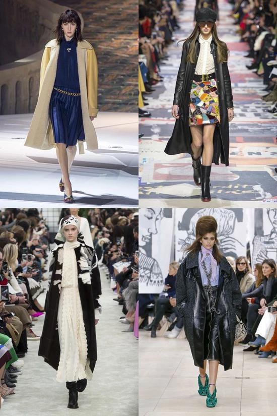 在秀场上,大衣+裙子也时髦着呢——Louis Vuitton、Christian Dior、Valentino、Miu Miu 2018秋冬系列上,各种款式的大衣和裙子随意排列都能美出不同的风格。