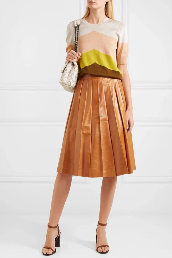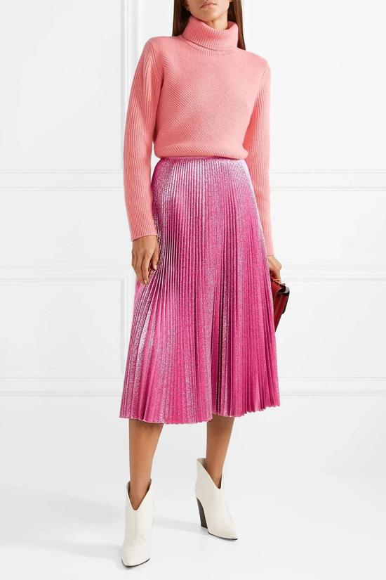 所有款式中,这种细褶皱的百褶裙是最好穿的。细腻的设计不仅更显精致,好像被压缩过的竖条纹还能给视觉带来利落的垂直感,会比较显瘦。