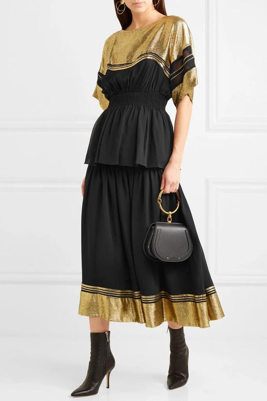 Chloé真丝混纺雪纺绸金属丝面料半身裙