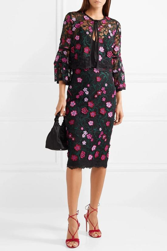 花朵裙也是各大品牌每季都会推出的单品,相比常见的平铺印花,像Veronica Beard 2018早秋系列的拼接花朵裙也很美。