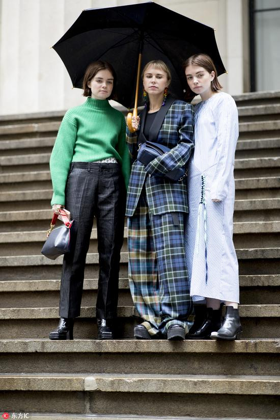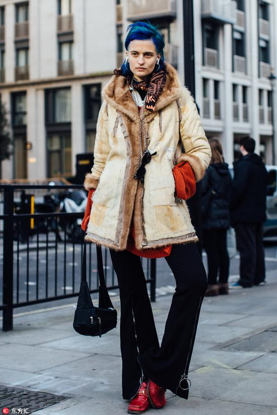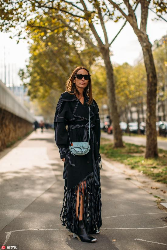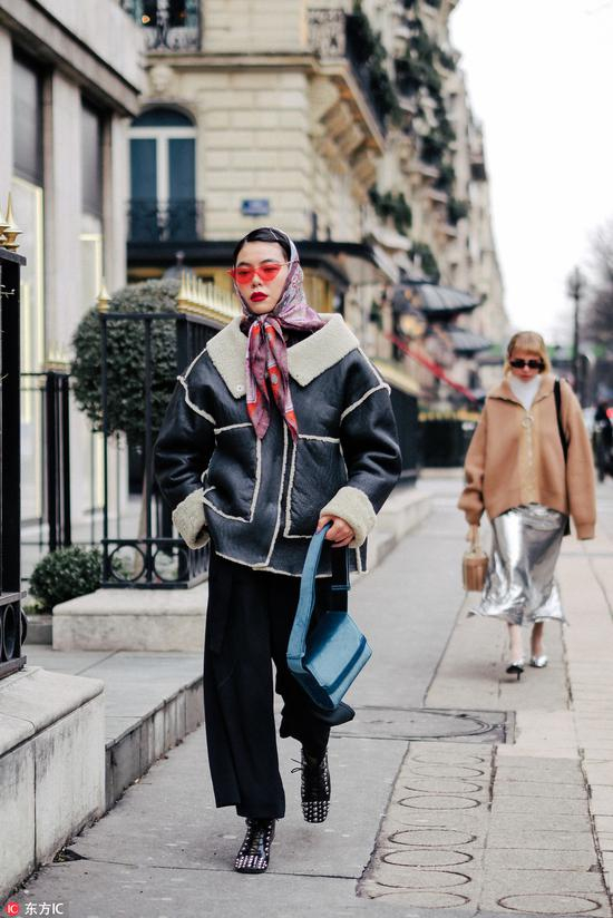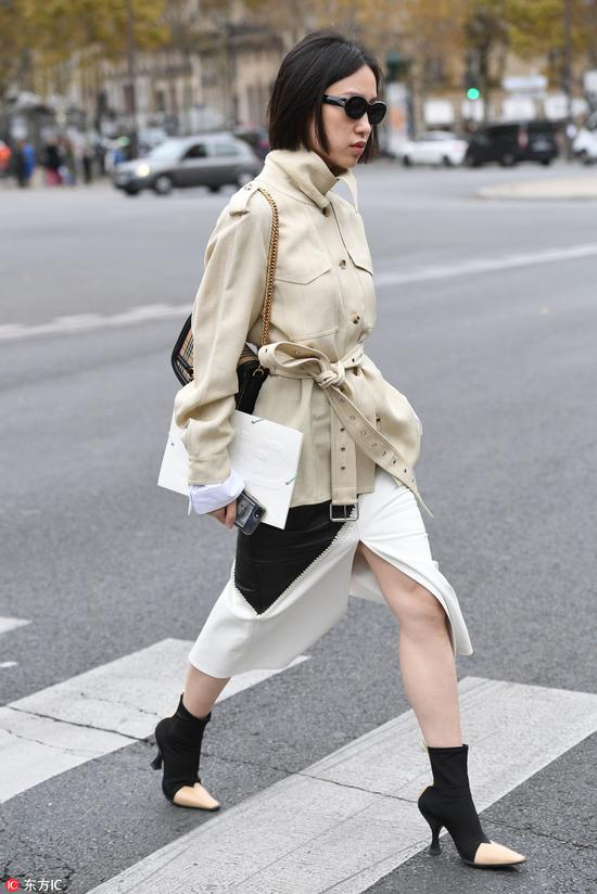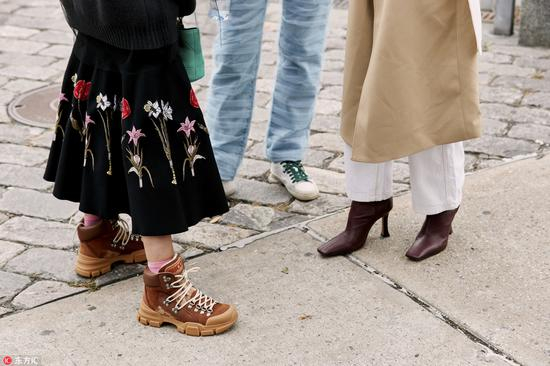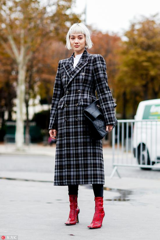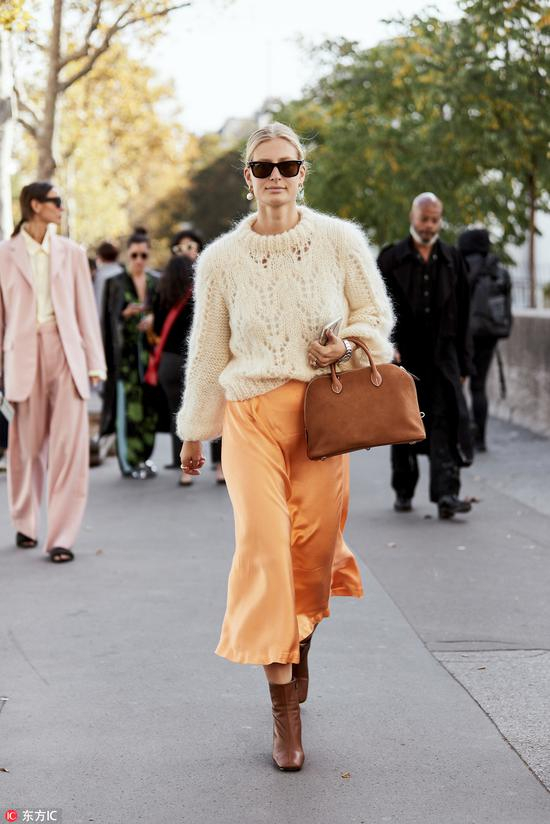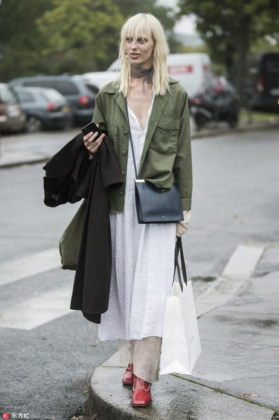 用方头及踝短靴搭配仙气飘飘的裙装,飘逸与潇洒的对比,形成有趣的矛盾感,也是秋冬不可忽视的chic搭配。