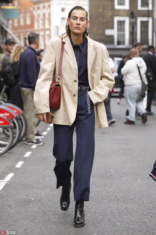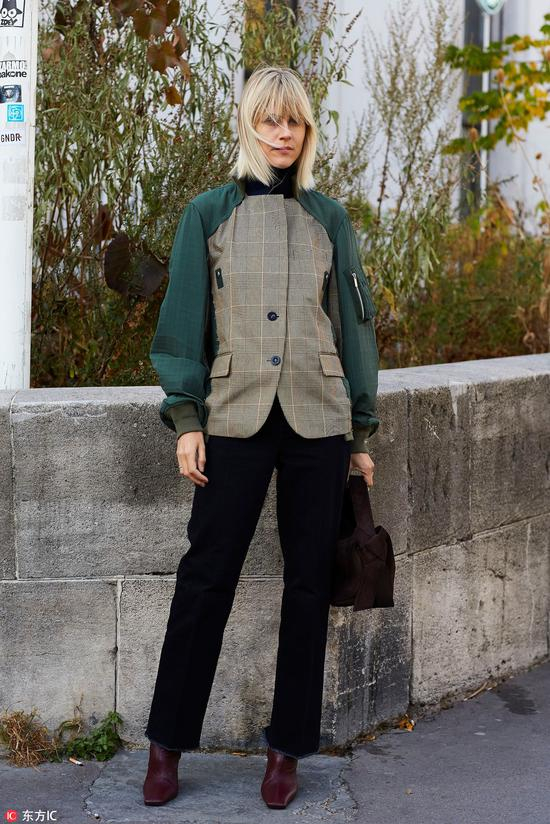 对于通勤女孩来说,西装外套搭配方头的ankle Boots也别有一番风味。既弱化了西装的严肃,又彰显出职场女性的好品味。