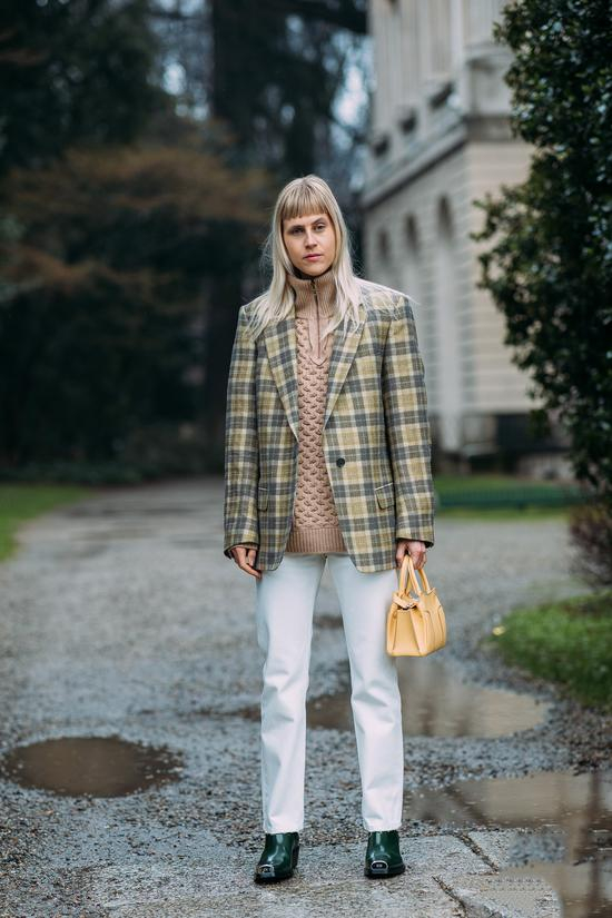 自带复古属性的方头短靴与同样年代感十足的阔腿喇叭裤也可以完美match,搭配起来复古值up,不过需要稍长一些的裤子才能碰撞出足够的火花。