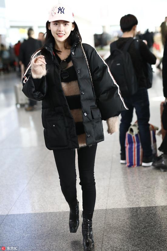 比如张嘉倪选择黑裤黑靴,简洁又不会显得沉闷,方头靴的设计为整体的造型设计感加分不少。