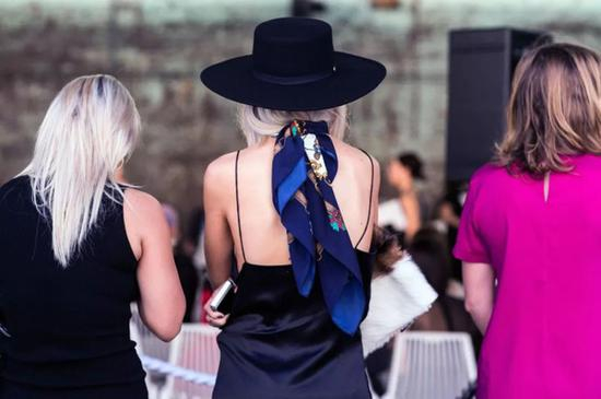 出席活动的时候,脖子如果觉得空,也不一定非要戴珠宝,一条丝巾一样很美。