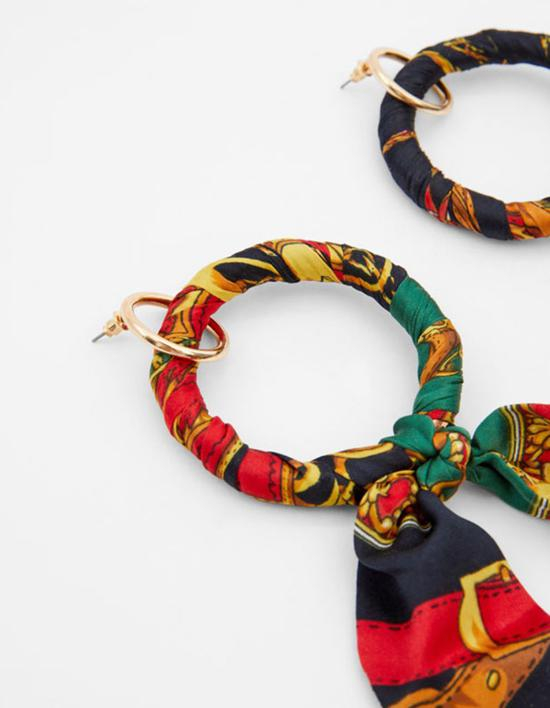你也可以拿出你的小方巾,系在大耳环做叠搭了~